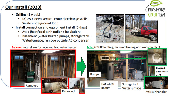 describes his ground source heat pump, solar roof, energy storage, amped-up
